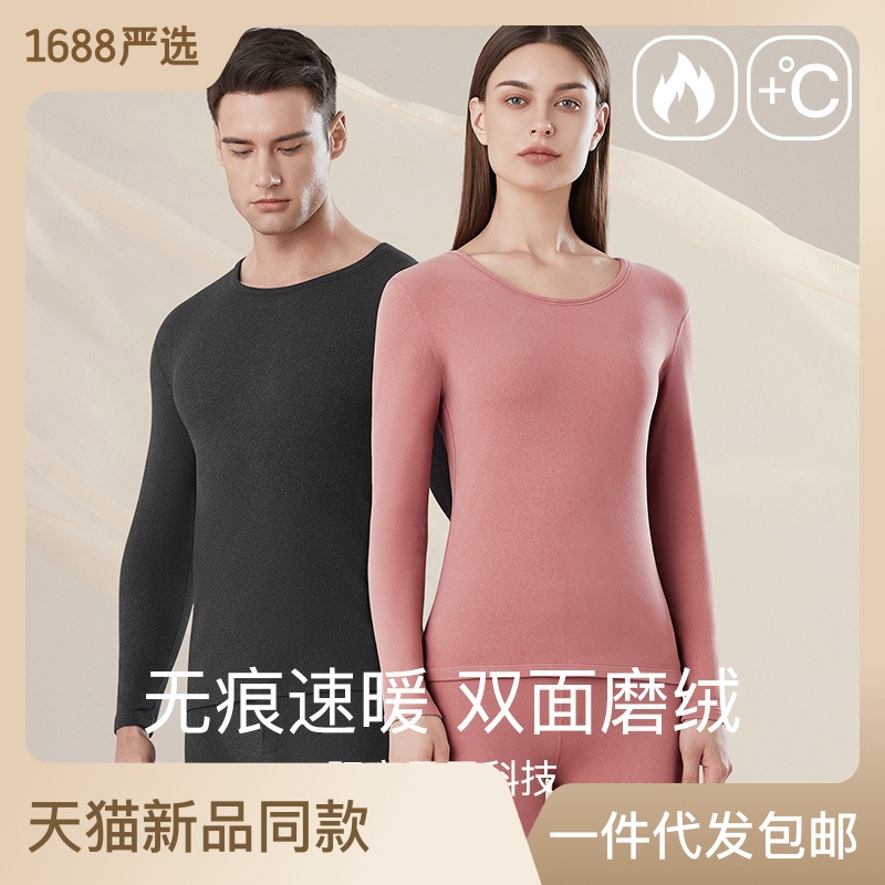 Couple thermal underwear women's crewneck wrap men's warm suit seamless long Johns autumn and winter thermal clothing