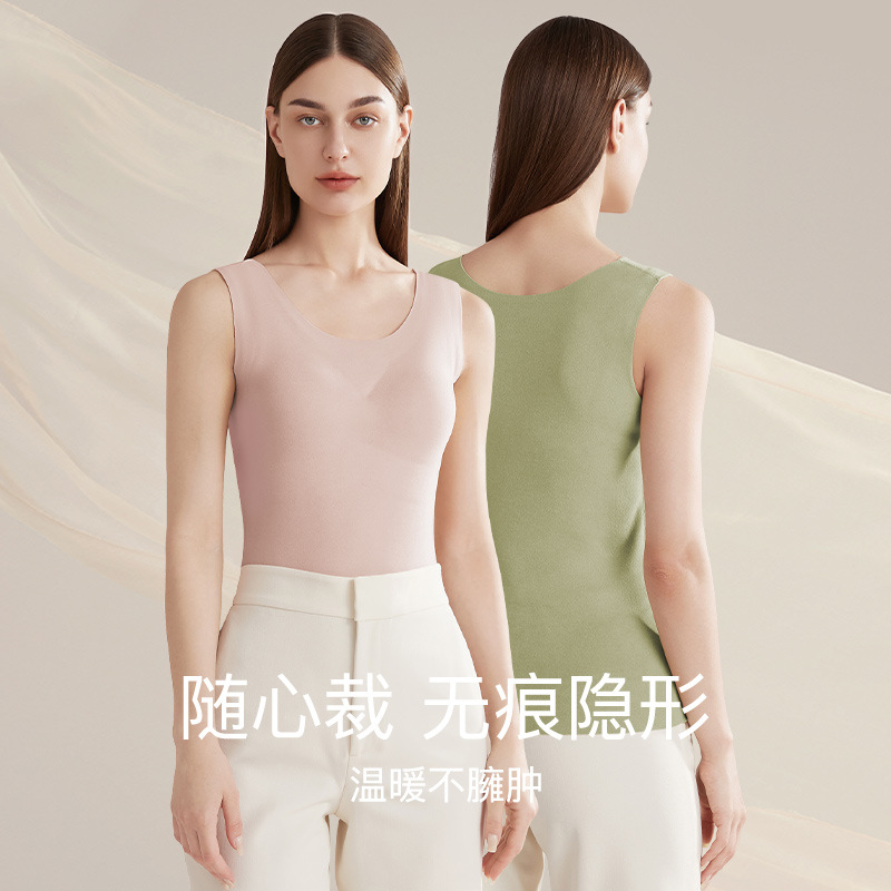 [Cashmere silk] Women's warm vest Women with chest pad slim heating seamless round neck autumn and winter warm vest