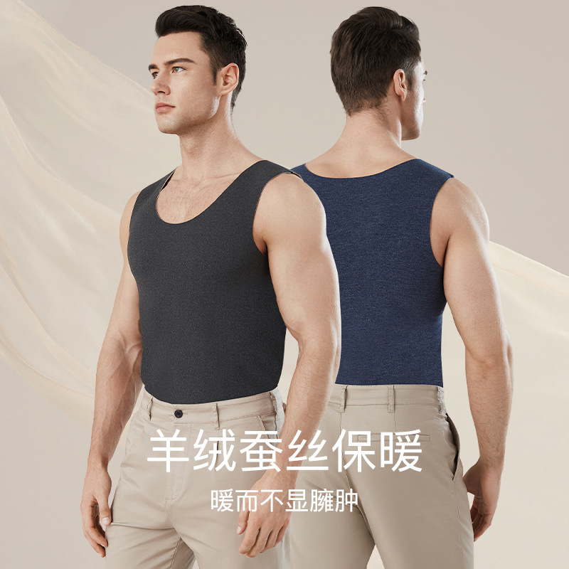 [Cashmere silk] Men's warm vest men plus size slim heat without trace round neck autumn and winter warm vest